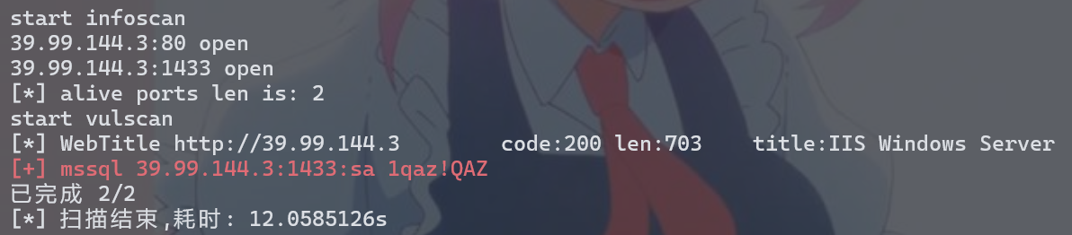 可以发现直接爆出了mssql的弱口令,我们直接用 MDUT 工具打。