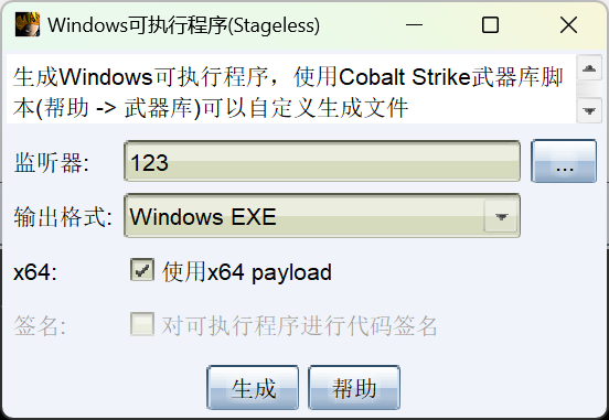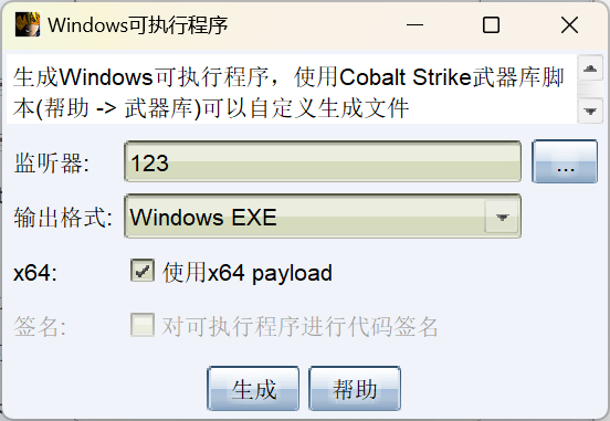 得到beacon.exe,c盘需要管理员,我丢在桌面去运行的。