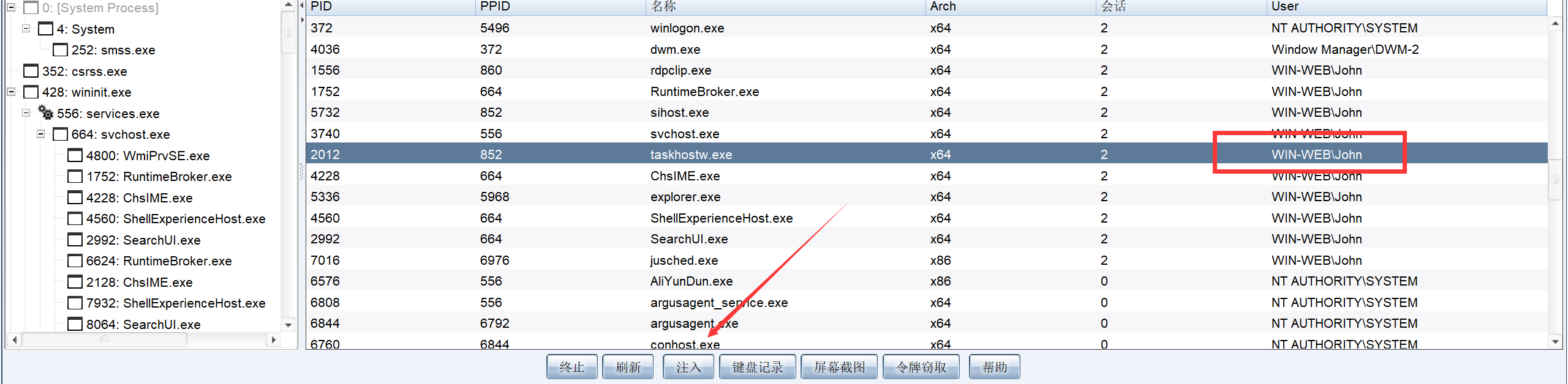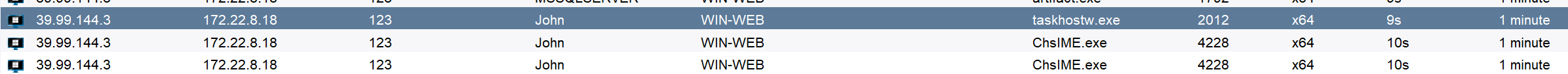 可以发现有个john会话为rdp远程连接并且为admin,我们去cs上进行进程注入拿到john的会话。