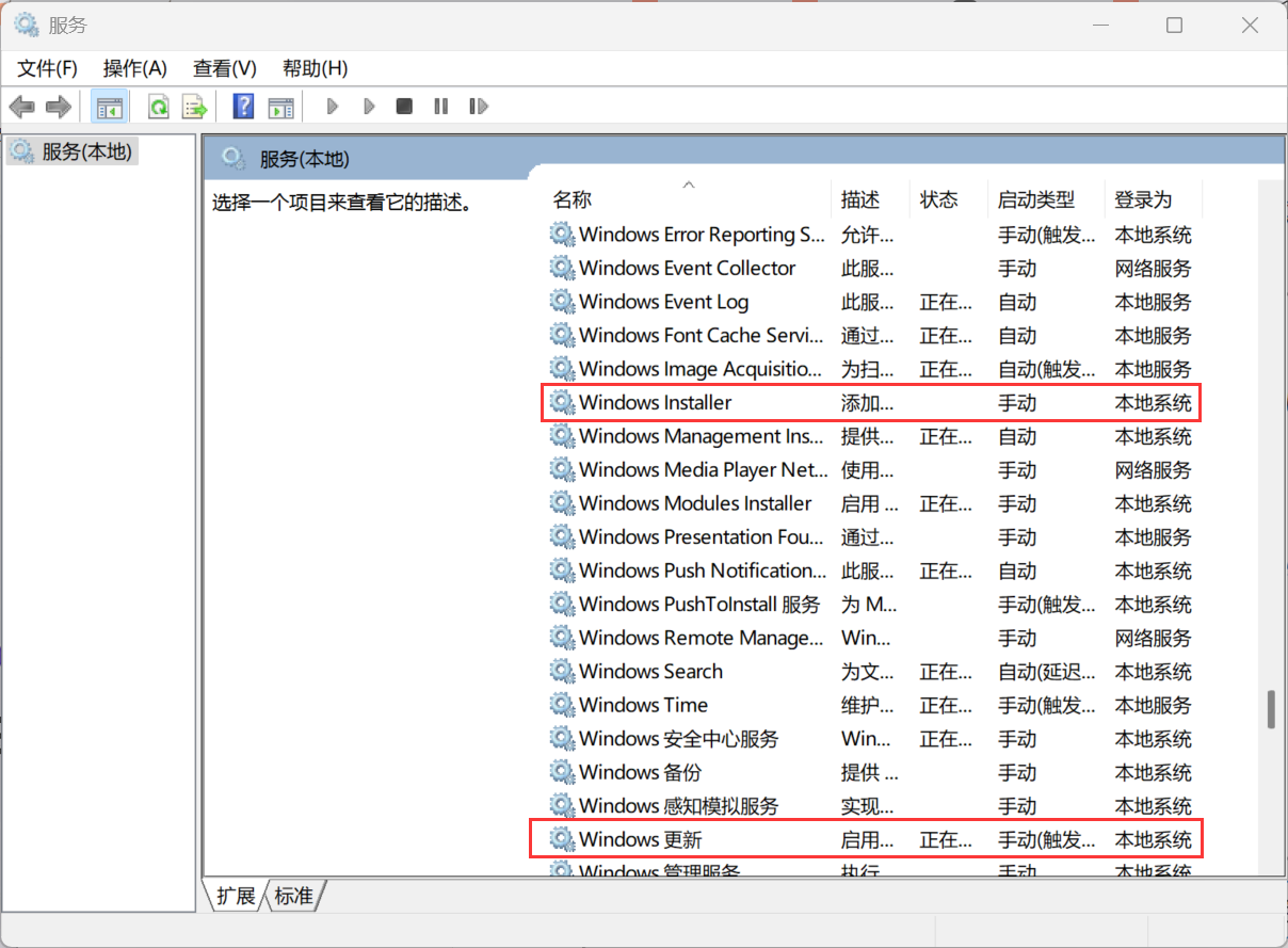 找到 Windows install 和 Windows更新 的两个服务,并启动,然后命令行运行 sfc /scannow 。它是用于扫描和修复系统文件的完整性问题。